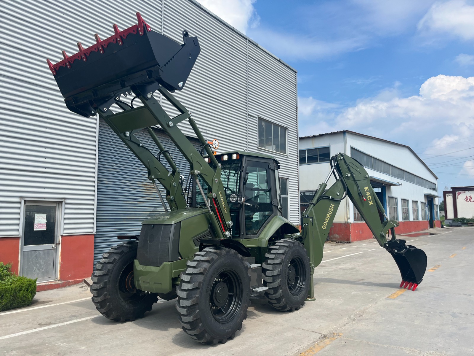 Екскаватор-навантажувач E4CX призначений для важких землерийних та будівельних робіт. Потужність: 93 кВт (2200 об/хв), Крутний момент: 450 Н.м, Двигун Cummins 4BTA3.9-C125, Повний привід 4x4, синхромеханічна коробка передач 4F+4R, Гідравліка: 175 літрів. Оснащений крабовим керуванням, камерою заднього виду, пілотним керуванням. Гарантія — 12 місяців.